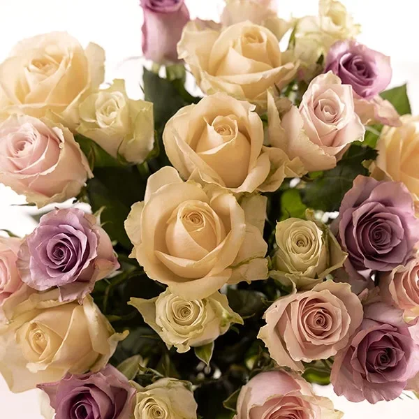 De zachte tinten van deze selectie doen denken aan een romantische lente-ochtend in Parijs. Stuur een vleugje voorjaarswarmte met dit boeket van gemengde rozen.