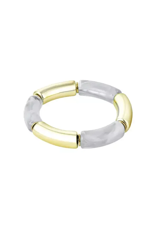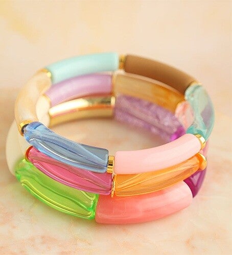De handgemaakte armbanden van Kyoto zijn one size, door de gelakte buisjes loopt een elastiek. Kortom, een uniek stukje design van Ann Sophie von Bulow.