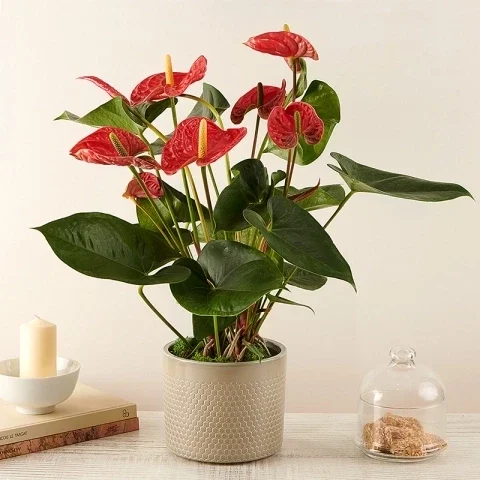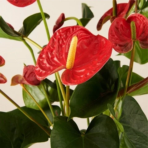 Met zijn hartvormige bloemen is de rode anthurium de favoriete plant voor een romantisch gebaar op een bijzondere datum. Een zuiverende plant die niet veel verzorging nodig heeft om er gezond uit te zien.